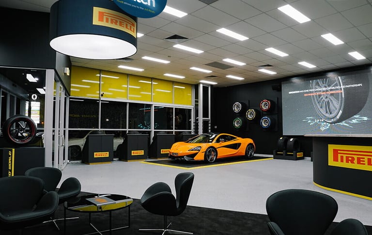 Exposição estratégica dos materiais promocionais em lojas e ambientes Pirelli, ampliando o alcance da campanha e o engajamento do público.