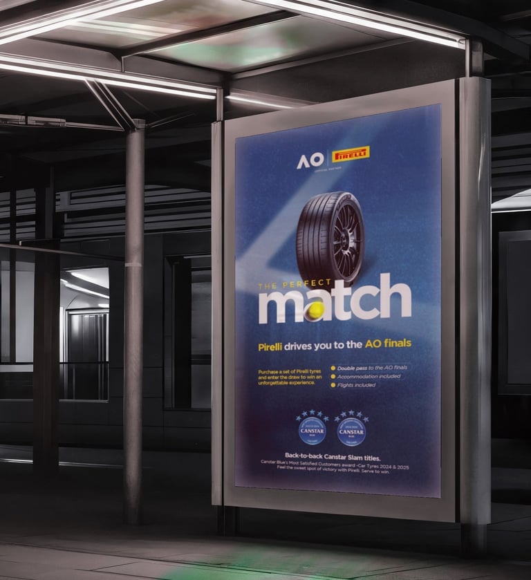 Além disso, a campanha deveria reforçar a reputação da Pirelli, evidenciando conquistas como os prêmios Canstar Blue e a associação oficial ao maior torneio de tênis da Austrália e um dos mais importantes do mundo, por meio de uma comunicação visual de alto impacto e materiais digitais versáteis para diferentes pontos de conexão com os clientes.