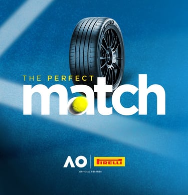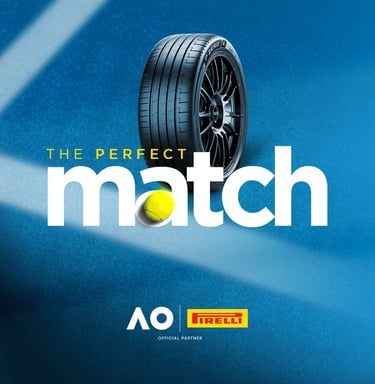 A missão era criar a identidade para uma campanha promocional que conectasse a marca Pirelli ao universo do tênis, destacando a parceria com o Australian Open e valorizando os diferenciais dos pneus Pirelli.